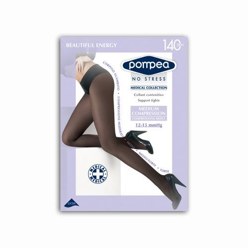 Collant 140 den coprente, confortevole ed al passo con la moda. Corpino contenitivo maglia nido d’ape a compressione graduata Forte, 18/20 mmHg, punta e tallone rinforzati, tassello in cotone.