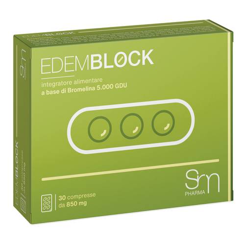 EDEM BLOCKDescrizione Integratore alimentare a elevata concentrazione di bromelina indicato per tutti gli stati infiammatori di organi e tessuti e in caso di traumi muscolo-scheletrici e osteo-articolari. La notevole azione antiedemigena riduce la posologia antidolorifica da associare ove necessario. Efficace nel trattamento di mastiti, tonsilliti, prostatiti, uretriti, laringiti, tendiniti, otiti, miositi ecc. Favorisce anche la riduzione di adenoidi e tonsille nei casi di ipertrofia semplice. Ingredienti Bromelina [da Ananas comosus (L.) Merr.] gambo 5.000 GDU/g protetta; agente di carica: cellulosa microcristallina; betull...
