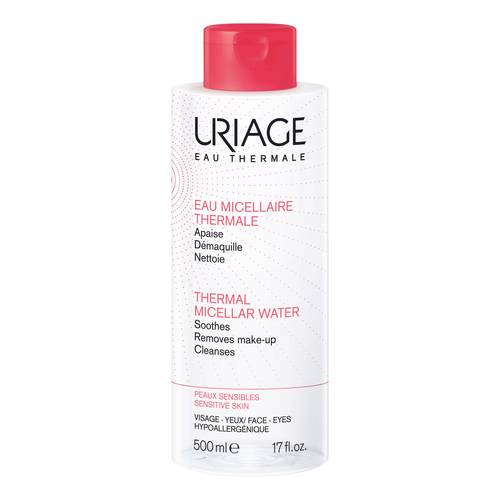 URIAGEACQUA MICELLARE TERMALE Acqua micellare termale struccante per cute soggetta a rossori. Deterge e elimina delicatamente il make up. Favorisce la scomparsa degli arrossamenti. Modalità d'utilizzo Applicare con un dischetto di cotone imbevuto nel prodotto e passare con delicatezza su viso, occhi e collo per eliminare completamente il make up. Vaporizzare il prodotto su tutto il viso e lasciare agire. Componenti Glicerina, estratto di mirtillo rosso, eau thermale d'uriage 10%. Formato Flaconi da 100 ml, 250 ml e 500 ml. Cod.15000884/15000885/15000886