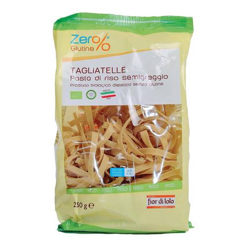 Il fiore di loto Zero%Glutine Tagliatelle Pasta di riso semigreggio, formato tagliatelle senza glutine da agricoltura biologica. Il riso semigreggio è il riso comunemente chiamato integrale, ovvero liberato dalla lolla, il rivestimento più esterno del chicco non commestibile. Ingredienti Farina di riso semigreggio bio; acqua. Caratteristiche nutrizionali per 100 g Valore energetico 360 kcal 1524 kJ Carboidrati di cui zuccheri 75 g 1 g Proteine 8 g Grassi di cui acidi grassi saturi 2,5 g 1 g Fibre alimentari 2,5 g Sodio 0,03 g Formato Confezione da 250 g. Cod. 701565